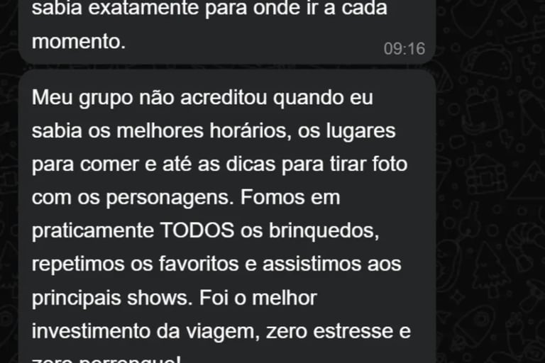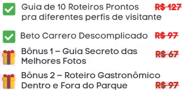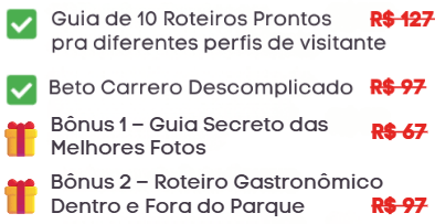 Você recebe 10 Roteiros Prontos, testados e aprovados, com a ordem ideal das atrações, horários e sugestões práticas.